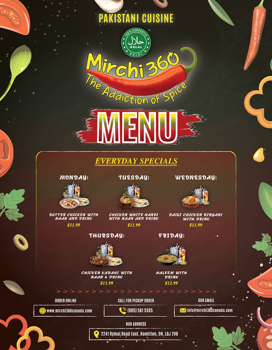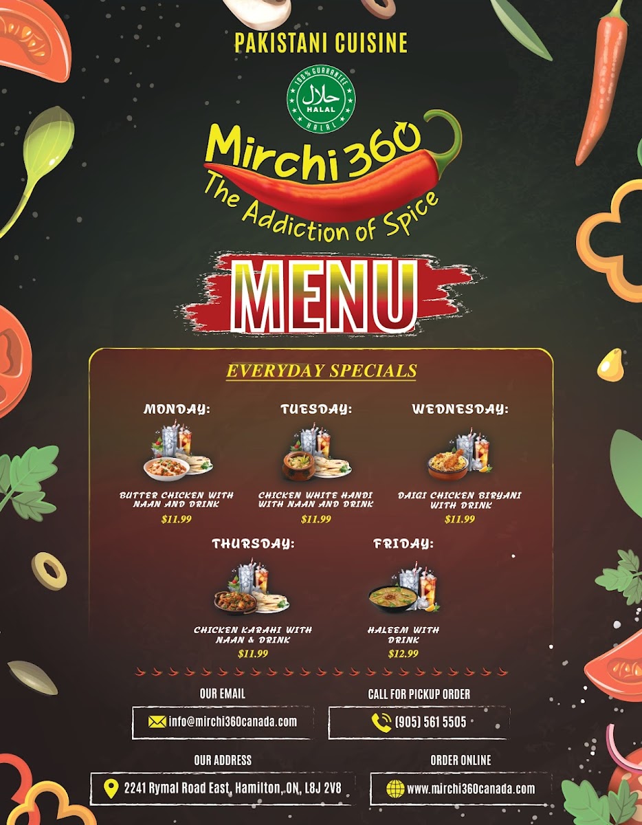 Welcome to Mirchi 360, a true gem nestled in the heart of Hamilton's culinary scene, specializing in authentic Pakistani cuisine. Located at 2241 Rymal Rd E, Hamilton, ON L8J 2V8, this vibrant restaurant invites diners to experience a delightful journey through rich spices and traditional flavors.